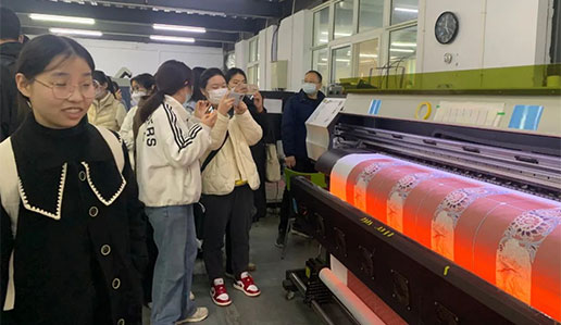 參加揭牌儀式的同學們參觀了鴻盛展廳、測試中心、應用中心等,直觀地了解了數碼印花的整個打印過程及各種不同材質的打印應用,了解了印花科技的發展、印染行業的進步。
