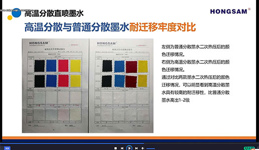高溫分散染料墨水具有優(yōu)異的色牢度等優(yōu)點(diǎn),能夠很好解決熱轉(zhuǎn)印工藝不耐高溫、色遷移牢度差等問題,避免集裝箱長途運(yùn)輸過程中或在成衣熨燙過程中發(fā)生二次升華搭色等情況造成的巨大損失。