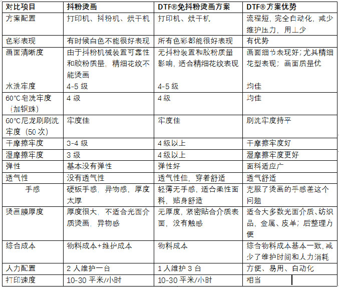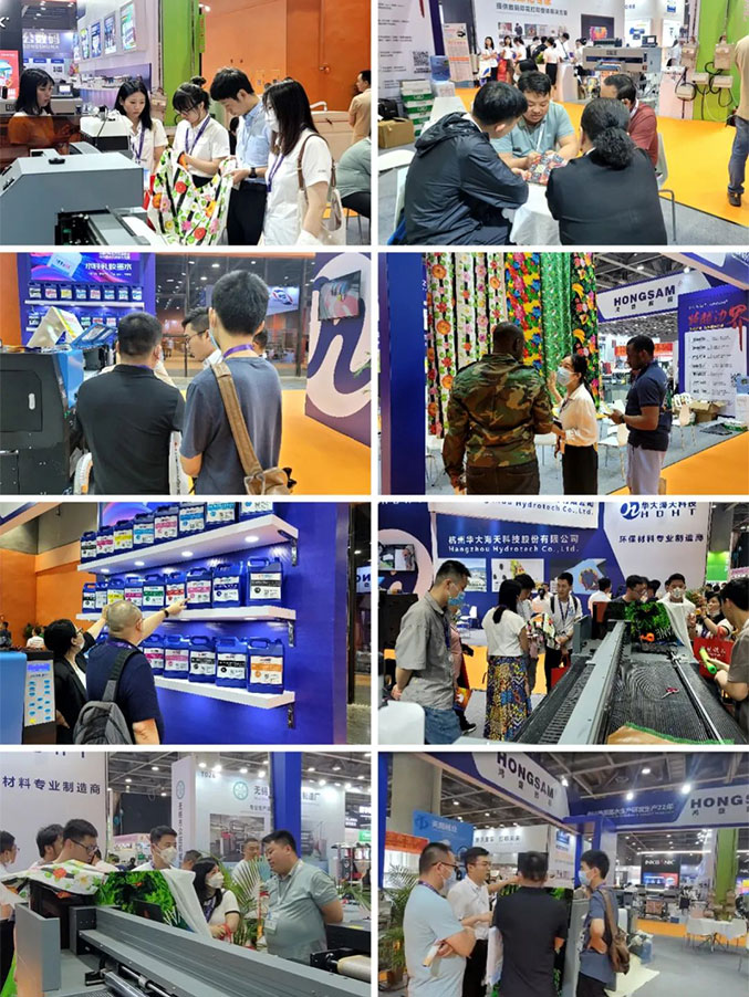 整個(gè)展館各個(gè)設(shè)備廠家都在展示抖粉方案,鴻盛數(shù)碼則推出革命性的棉織物和多種介質(zhì)DTF免抖粉燙印方案,其工藝極大程度解決了抖粉膜轉(zhuǎn)印存在手感和透氣性等問題,成為數(shù)碼印花領(lǐng)域很好的一種補(bǔ)充方案,為繁榮數(shù)碼印花產(chǎn)業(yè),增添了一種更接地氣的解決途徑。該方案打印流程更短,全部流程只有三個(gè)步驟:打印——烘干——燙印。這類似于熱升華燙印滌綸,只不過采用了塑料膜代替了熱轉(zhuǎn)印紙,無“抖粉”環(huán)節(jié),減少了疵品的發(fā)生幾率,并回避了不少抖粉方案存在的問題。