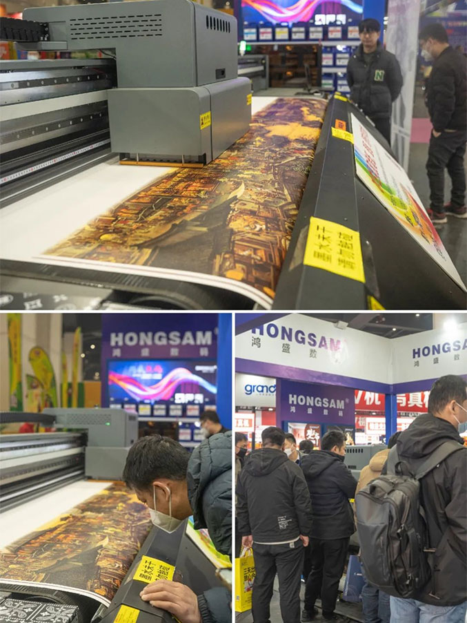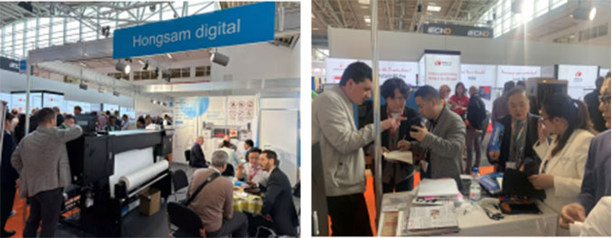 與其他品牌相比,鴻捷水性環保乳膠方案在多介質應用、打印效果以及性價比方面擁有顯著的優勢,深受歐洲客戶的歡迎。展會期間,甚至有多家同行朋友蒞臨鴻盛展位進行技術交流,對鴻捷水性乳膠方案表示了極大的興趣和認可。