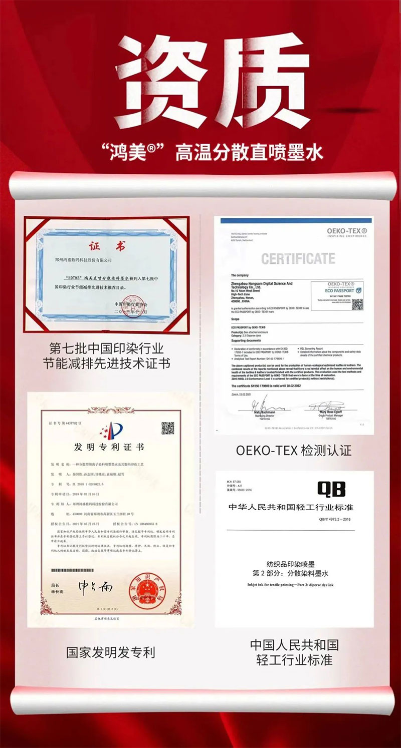 此次的測試成功,也給還在觀望的設備廠商打消了顧慮,從墨水的流暢性及兼容性來講,是完全達到官方的要求。從實際應用中,鴻盛數碼高溫分散直噴染料墨水已成功應用于多種工業(yè)噴頭。