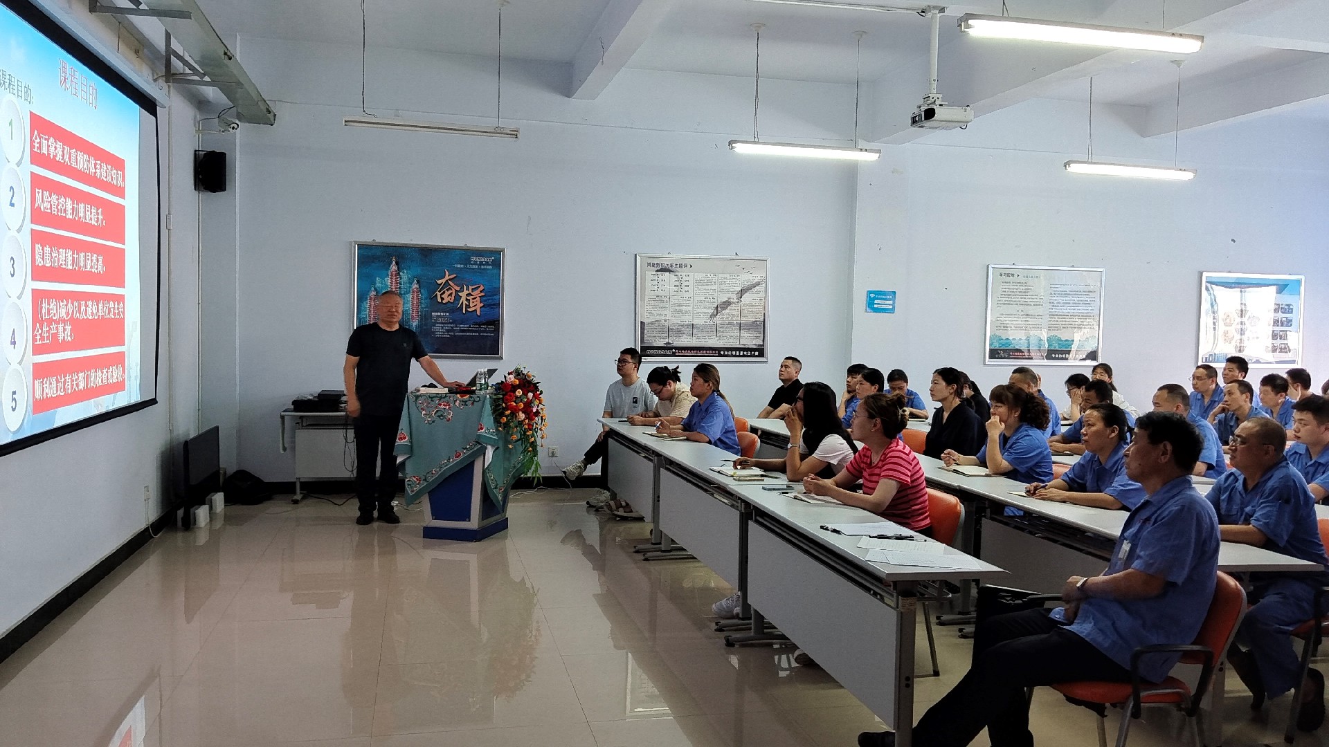 培訓現場從構建雙重預防機制的必要性、雙重預防機制工作重點等方面詳細講述雙重預防體系的出臺背景、核心理念。結合雙重預防體系鞏固提升要求,針對不同業務工作特點與前期體系運行情況,就如何聚焦風險分級管控中的各項流程、隱患排查治理中著重落實各項步驟進行深入講解,對如何避免事故發生、整治隱患問題等方面進行深入剖析。