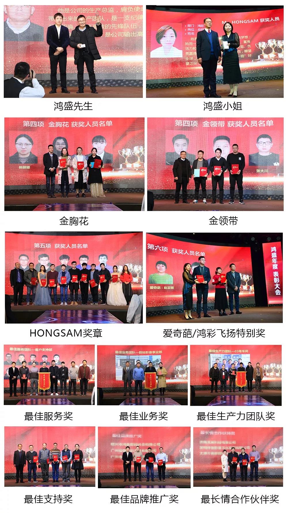 回首2019,表彰過去一年里辛勤的工作者,在表彰大會上評選出優(yōu)的工作者,也是為激勵大家更好地拼搏。Mr.HONGSAM 、Ms.HONGSAM、金胸花、金領帶、鴻盛獎章、佳服務團隊、佳生產力團隊