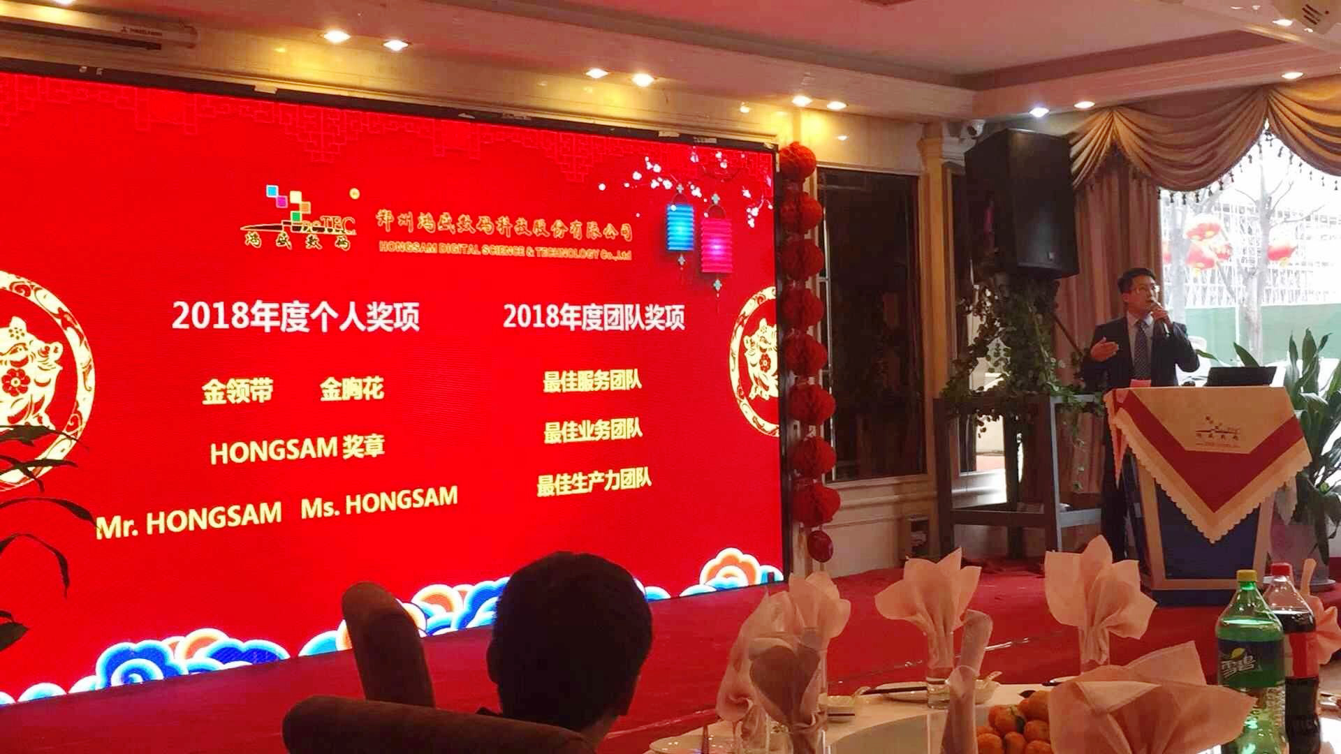2018年12月29日,2018年,鄭州中原名家大酒店,鴻盛數(shù)碼2018年總結(jié)暨2019迎新年會隆重舉行。