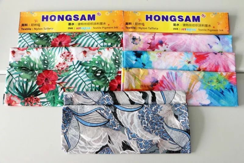 捷特絲紡織涂料墨水配套星光SG1024SA噴頭現(xiàn)場(chǎng)打印純棉匹布展示,近些年,鴻盛數(shù)碼針對(duì)紡織涂料多面料印花的研發(fā)有了更多的結(jié)果,尤其是“捷特絲®”紡織涂料在CVC面料、PU皮革、20D尼絲紡等復(fù)雜面料上的成功應(yīng)用,真正實(shí)現(xiàn)了鴻盛“捷特絲”紡織涂料墨水“一種墨水,所有織物”。
