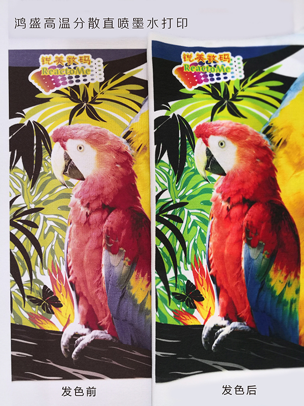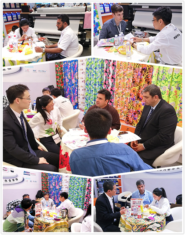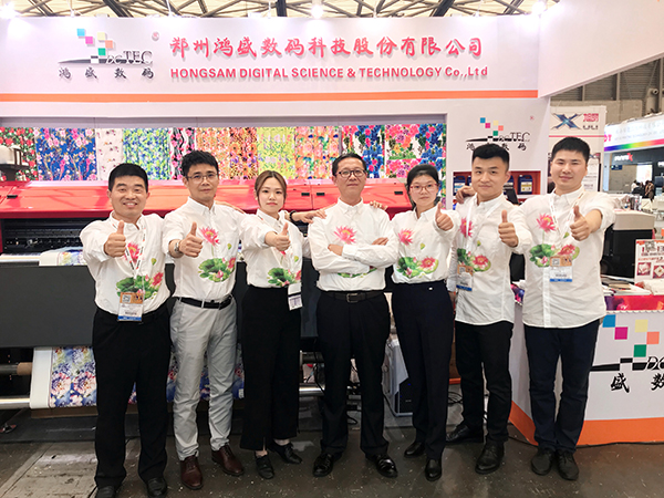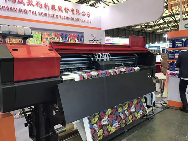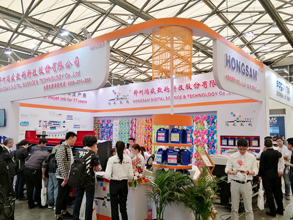 展會(huì)現(xiàn)場(chǎng),鴻盛數(shù)碼“鴻美”高日曬熱轉(zhuǎn)印墨水配套EPSON4個(gè)5113噴頭數(shù)碼機(jī),現(xiàn)場(chǎng)演示打印效果,色彩精湛,流暢性好。高日曬熱轉(zhuǎn)印墨水在日曬牢度和耐遷移度方面進(jìn)行了細(xì)致研究,高日曬牢度,相對(duì)較好的遷移牢度,色彩艷麗、飽和度高,受到目前進(jìn)出口紡織品和熱轉(zhuǎn)印客戶(hù)的青睞。