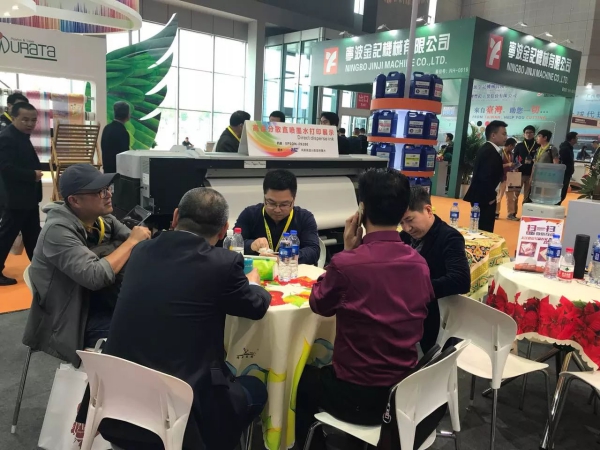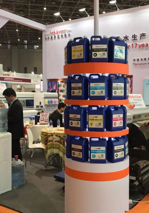 現(xiàn)場(chǎng)捷特絲紡織涂料墨水配套HJ-D1800打印純棉匹布展示,“捷特絲”紡織涂料墨水作為鴻盛數(shù)碼紡織墨水中的“亮劍”產(chǎn)品,一直備受行業(yè)人士關(guān)注和認(rèn)可,此次展會(huì)期間,更有多家行業(yè)領(lǐng)先的數(shù)碼印花設(shè)備生產(chǎn)商集聚鴻盛數(shù)碼展臺(tái),謀求合作,鴻盛展臺(tái)熠熠生輝。另,“捷特絲”紡織涂料墨水在CVC面料、PU皮革、20D尼絲紡等面料也有精彩優(yōu)異的表現(xiàn)!很多客戶慕名而來,索要布樣。