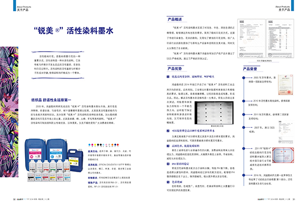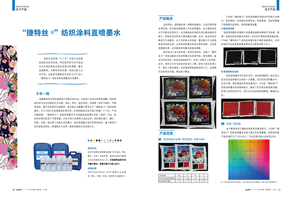 鴻盛數碼——專注17年的噴墨墨水生產商,本期《噴墨時代》主要介紹了紡織四款(涂料 分散 活性 酸性)熱銷產品和鴻盛新推出的佳能pro系列染料/顏料墨水,文章針對產品的各項數據做了詳細說明....