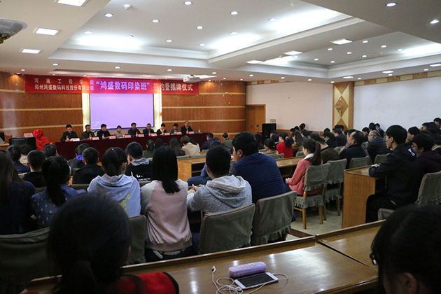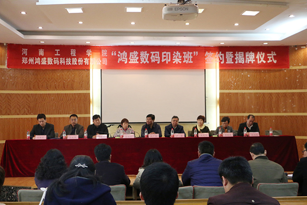 2017年3月29日,鄭州鴻盛數碼科技股份有限公司與河南工程學院聯合創辦的“數碼印花班開班簽約暨揭牌儀式”在河南工程學院隆重舉行,雙方以培養數碼印花實用型人才為目的,通過企業與院校的優勢互補、資源共享,通過理論加實踐的授課方式,讓學生畢業時成為受社會和數碼印花行業歡迎的人才。