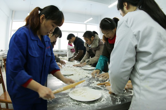 在現場,你不僅可以欣賞到《切菜十八掌》、《搟皮大挪移》、《餃子經》等絕世神功,還能品嘗到《韭菜雞蛋餃子丸》、《豬肉大蔥餃子餅》等人間美味,如此美景美食,再加上時不時出現的“美廚娘”,實在是讓人流連忘返啊,歐了,閑言碎語不要講,直接上圖才像樣,走你