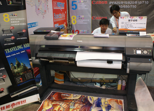 CANON iPF650/750/655/755系列5色專用墨水(染料和顏料)應(yīng)用于圖文行業(yè)、GIS/CAD、短版印刷、硫酸紙制版,配合全顏料5色墨水,完成印前行業(yè)藍圖打印。此次中原廣告展現(xiàn)場,鴻盛數(shù)碼東風路分公司為現(xiàn)場觀眾展示了Canon ipf650水性染料、顏料墨水打印硫酸紙、普通紙方案。