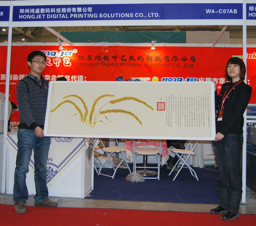 EPSON 7880配合“鴻彩6”水性顏料墨水打印絹絲、油畫布等材質(zhì)裝飾畫制作方案:此方案由EPSON Stylus Pro 7880C,配套“鴻彩6”顏料墨水和RIP輸出軟件及ICC生成軟件組成。展會現(xiàn)場,北京鴻捷印藝帶現(xiàn)場觀眾體驗(yàn)了擁有卓越輸出品質(zhì)的8色愛普生7880C大幅面打印機(jī),配合色彩鮮艷、牢度優(yōu)異的“鴻彩6”水性顏料墨水高速超高精度的打印效果。