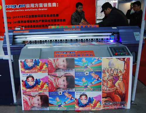 此次北京鴻捷印藝展示了HONG-JET-4160-LUV UV平板式打印機(jī)配合鴻盛UV墨水打印廣告板材的方案。HONG-JET-4160-LUV打印機(jī)擁有真正工業(yè)化生產(chǎn)平臺吸附系統(tǒng),可吸附不同打印材料;且噴頭高度可調(diào),可打印不同厚度的材料,快速實(shí)現(xiàn)您多用途工業(yè)化生產(chǎn)的夢想。此次配合環(huán)保流暢,色彩艷麗的鴻盛UV墨水,現(xiàn)場打印了玻璃、瓷磚、天花板等材質(zhì),贏得現(xiàn)場觀眾一致好評。