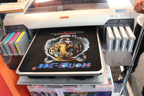 1、Hong-Jet HJ-8420平板式數碼印花機使用鴻盛“jetextile”“捷特絲”紡織涂料墨水直噴成衣、T恤印花方案。