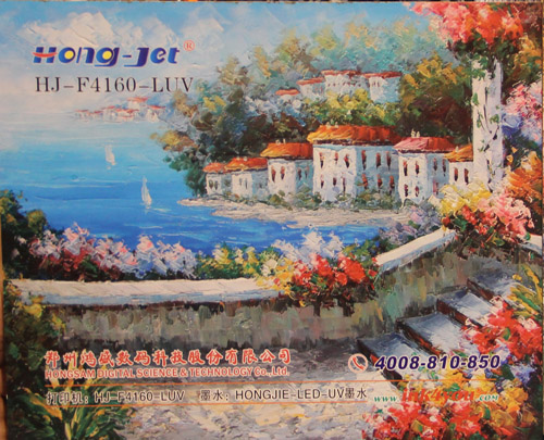 Hong-Jet 4160-LUV使用鴻盛UV光固化墨水打印各種特殊材料:HJ-F4160-LUV LED-UV平板打印機,擁有真正工業化生產平臺吸附系統,可吸附不同打印材料;且噴頭高度可調,可打印不同厚度的材料,滿足了客戶對多用途工業化生產的需求。此次第七屆中國義烏框業與裝飾畫展覽會上,HJ-F4160-LUV配合鴻盛UV光固化墨水,現場打印瓷磚、玻璃、亞克力板等多種特殊材質,*高精度和超高速度的輸出效果,以及鴻盛UV光固化墨水的細膩呈現,贏得現場眾多觀眾的“芳心”。