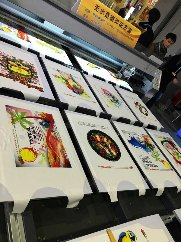 “捷特絲®”紡織涂料墨水適用于幾乎所有面料,可直噴純棉裁片、T恤等印花,工藝簡單,印花后高溫焙烘即是成品,一般不需水洗,沒有污水排放,是真正節(jié)能環(huán)保的紡織品生產(chǎn)模式。鴻盛數(shù)碼使用“捷特絲®”三代紡織涂料墨水在HJ-F1625多功能平板數(shù)碼印花機(jī)展示了涂料墨水的流暢打印,生產(chǎn)過程中幾乎不用清洗,提升了生產(chǎn)效率,獲得了觀眾的高度認(rèn)可。