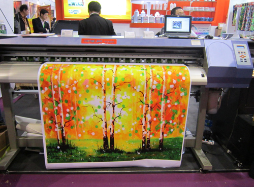 此次2013廣州國際廣告標識展上,HJ-4165,高效產(chǎn)能與超高畫質的結合,配合“鴻彩6®”四代顏料墨水打印純棉油畫布。HJ-4165采用新型第五代微壓電打印技術,行業(yè)內(nèi)制造商THK品牌導軌,長壽命、低噪音、高速性,且每種顏色配備有兩個大容量墨水盒,適合大批量高速生產(chǎn)。“鴻彩6®”第四代壓電大幅面顏料墨水作為新一代顏料墨水,采用了VM鮮艷紅色彩系統(tǒng),高密度黑色、牢度及廣泛的介質適應性,干燥較快流暢性好,尤其適合油畫藝術品復制。2013廣州國際廣告標識展現(xiàn)場,HJ-4165使用“鴻彩6®”四代顏料墨水,高精度復制油畫藝術品,細膩展現(xiàn)出藝術品原作的靈魂,演繹文化經(jīng)典,吸引了眾多國內(nèi)外參展觀眾的目光。