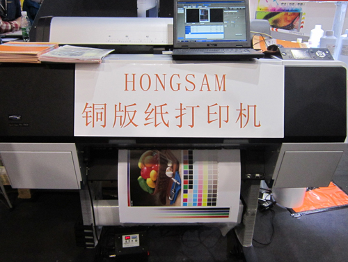 展會現(xiàn)場打印展示了亮麗的菜譜圖案,展示了這個方案在要求色彩艷麗、方便更換的菜譜制作行業(yè)的強大優(yōu)勢;水性**顏料墨水高度的耐摩擦牢度,優(yōu)異的色彩、光澤表現(xiàn)力,特別是水性環(huán)保的特性,也徹底征服了慕名而來觀看的參展觀眾。