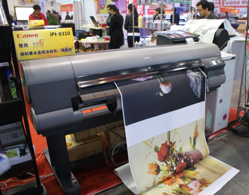隨著人們對文化生活的追求變的越來越迫切,對藝術品的需求呈現出旺盛的態勢,藝術品的復制技術也成為印刷行業的熱門話題。噴墨作為藝術品復制的重要手段,在近幾年的數字印刷中發揮著膠印無法取代和超越的重要作用。鴻盛適時推出的“鴻彩6®”顏料墨水打印油畫布滿足了行業客戶的需求。“鴻彩6®”第四代壓電大幅面顏料墨水作為新一代顏料墨水,采用了VM鮮艷紅色彩系統,高密度黑色、牢度及廣泛的介質適應性,干燥較快流暢性好,尤其適合高端油畫藝術品復制。2013春季中原廣告展上,“鴻彩6®”顏料墨水借助Canon iPF8310在油畫布、絹絲上的色彩表現,光鮮亮麗的色彩輸出,贏得在場觀眾的一致好評。