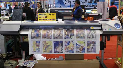 作為Roland RA640、Roland FH740系列寫真機河南核心經銷商,鴻盛數碼東風路分公司此次在2013春季中原廣告展上現場呈現了ROLAND RA640使用“鴻美?”二代熱轉印墨水打印毛絨布、泳裝布、滌綸等印花方案。“鴻美?”二代熱轉印墨水采用更新的工藝和原漿制成,基本解決了市場反應的一系列問題,在原熱轉印墨水基礎上,保留了其色彩的優點,從墨水流暢性,色彩飽和度、牢度,紙張快干型和附著力等方面著手進行了翻天覆地的改進,尤其適合布匹生產型客戶使用;ROLAND RA640,黃金七代打印頭,采用新打印技術,影像再現還原,此次春季中原廣告展,ROLAND RA640加之配套的“鴻美?”二代熱轉印墨水,“雙劍合璧”,為現場觀眾呈現了一套高品質的“鴻美”二代熱轉印方案,吸引眾多觀眾前來觀賞。