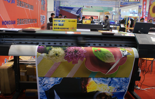 此次春季中原廣告展上,鴻盛數碼鄭州東風路分公司多次展示了HJ-4180高速噴墨打印設備。HJ-4180采用新型第五代微壓電打印技術,配合VSDT可變墨滴技術,使墨滴細密,高精度重現圖像豐富細節;與之配套使用的“鴻彩?”染料墨水,具有優良的耐光性、耐候性和防水性,凸顯了鴻盛數碼影像噴墨方案的色彩準確性和色彩飽和度,滿足了廣告、影像行業對于噴墨墨水的高品質需求。