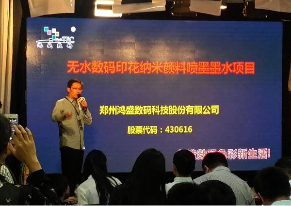 鴻盛數碼作為國內知名的專業噴墨材料研發生產商,作為國內*一家在新三板登陸的噴墨材料研發生產商,作為連續保持了10年國家高新技術企業資格的科技型企業,攜專利項目——“無水數碼印花納米顏料噴墨墨水項目” ,參加了此次選拔。