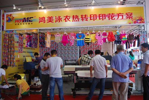 2013中國國際泳裝展現場,鴻盛數碼還展出了“鴻美®”泳衣熱轉印印花方案。“鴻美®”熱轉印墨水適用于滌綸織物面料的的轉移印花,尤其適合布匹生產型客戶使用?!傍櫭?reg;”泳衣熱轉印印花方案采用HJ-4162高速噴墨數碼印花機,高精度導軌、平臺,3.5pl呈現畫面品質。“鴻美®”泳衣熱轉印印花方案投入少、工藝簡單且節能環保,可實現各種印花潮流泳衣效果,也是鴻盛數碼為行業用戶提供的成熟泳衣數碼印花方案。