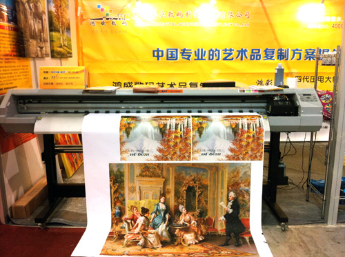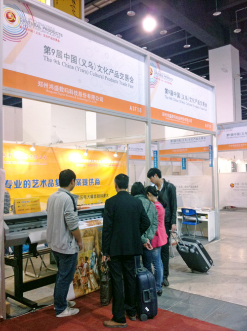第九屆中國義烏文博會上,鴻盛數碼在展會現場展出了“鴻彩6®”藝術品復制方案,而且在布展當天,采用“鴻彩6®”顏料打印輸出的藝術品復制作品就得到眾多行業客戶的關注。