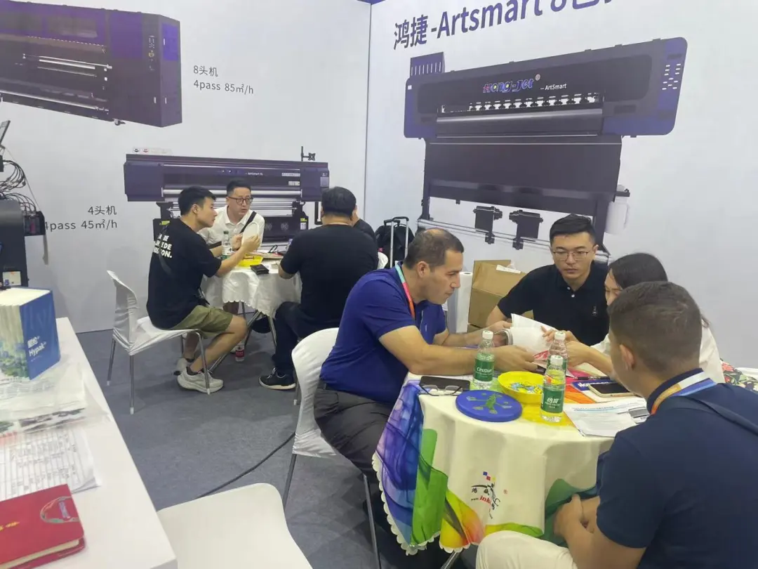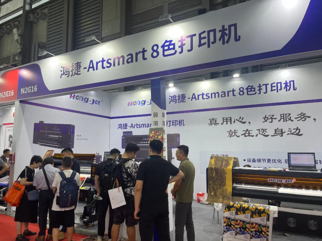 在展會現場,HONGJET-artsmart 8色雙頭數碼打印機憑借其卓越性能脫穎而出,以驚人的快速響應能力、穩定的輸出品質、高精度的打印效果以及成本效益高的特點贏得了廣泛關注。該機型不僅兼容油畫布、高端相紙、銅版紙等多種打印介質,完美滿足不同領域的個性化需求,更以其在速度與質量上的雙重優勢,成為了現場的一大亮點。