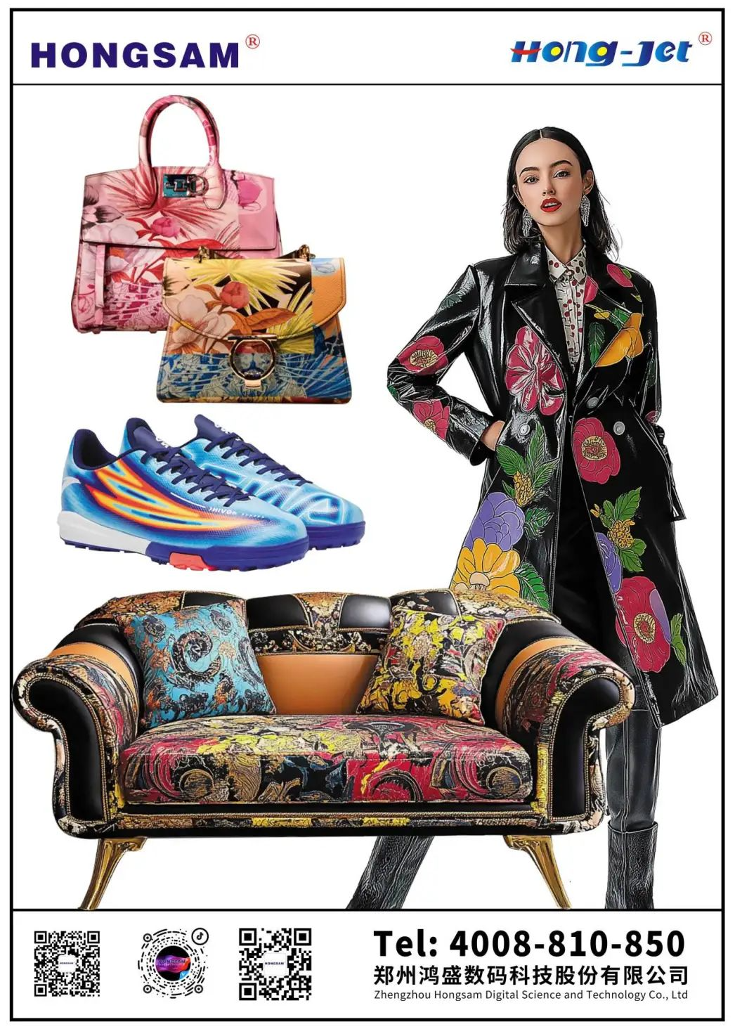JETALL®水性環保乳膠墨水是完全水基(water based)顏料墨水,不含國際違禁化學品,沒有氣味,產品耐候、耐寒、抗氧化、抗折壓,并且解決了很多非親水性介質印花老大難問題;也給廣告、印刷、印花(家裝)等行業綠色生產找出了一個明朗的出路。JETALL®水性環保乳膠墨水于2023年6月被列入《第十六批中國印染行業節能減排先進技術推薦目錄》,應用領域廣泛、不限材料類型,滿足了更多應用場景的需求,為未來廣告、影像、印刷、印花、工業應用等各行業帶來了無限可能! 水性環保乳膠打印方案的優勢1.環保性鴻捷數碼的水性乳膠墨水是完全水基的顏料墨水,不含國際違禁化學品,無異味,無揮發性有機化合物(VOC)排放,符合環保要求,適用于對環保要求較高的應用場景,如室內裝飾、紡織品印花等。2.材料適應性水性乳膠方案可廣泛應用于多種材料,包括皮革、墻紙、鞋材、服裝面料、紡織品、燈箱布、玻璃貼、PVC、軟包、標簽、特種紙張等,特別適用于非吸收性介質和對環保要求較高的材料。3.打印效果乳膠墨水的耐候性、耐寒性、抗氧化性和抗折壓性能出色,解決了UV打印中圖案拉伸開裂的問題,打印圖案色彩鮮艷,牢度高,耐拉伸,適用于高牢度輸出。4.成本與效率水性乳膠方案的維護成本較低,且一臺設備可應對多種材料,減少了設備配置和維護成本,打印速度較快,例如HJ-1808L乳膠打印機每小時可輸出60m。5.市場地位鴻盛數碼作為噴墨行業的領先企業,其水性環保乳膠方案在行業內具有較高的認可度,尤其在環保和材料適應性方面表現出色。