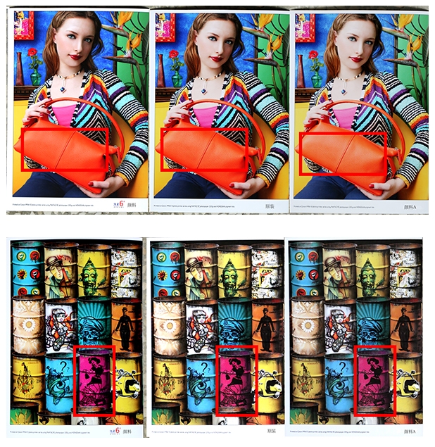 噴墨成像原理是噴墨墨水通過控制噴印到相紙上。鴻盛數碼影像墨水的顏色為 12 色,特殊要求還能增加專色。色域和飽和度遠遠大于沖印的三基色,還有淺色使圖像的過渡更平滑,還原度遠超傳統沖印。